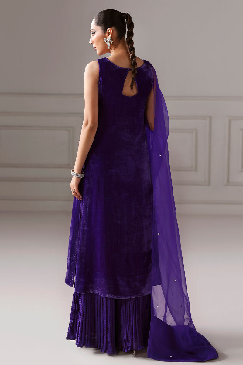 Lavish Deep Purple Velvet Sharara Ensemble