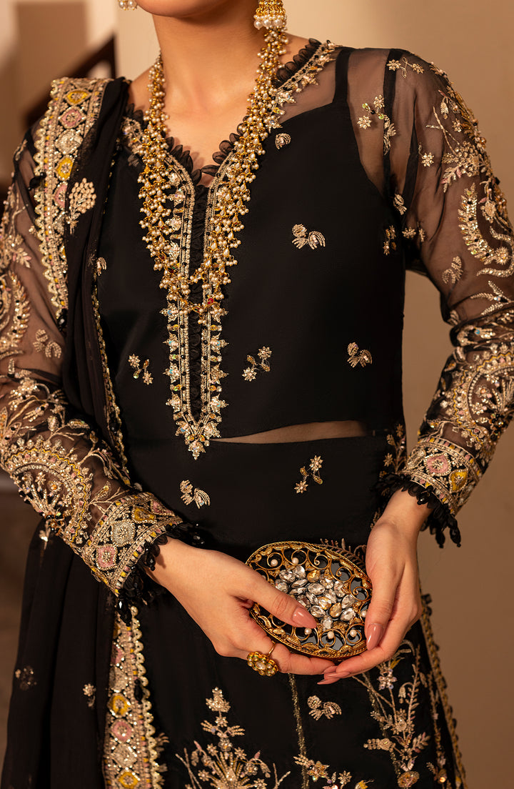 Draped in refined organza, DUSKY FORMAL is where hand-embellished artistry meets thoughtful handcrafted detailing — front, extensions, and fully embellished sleeves for cohesive, luxurious elegance.