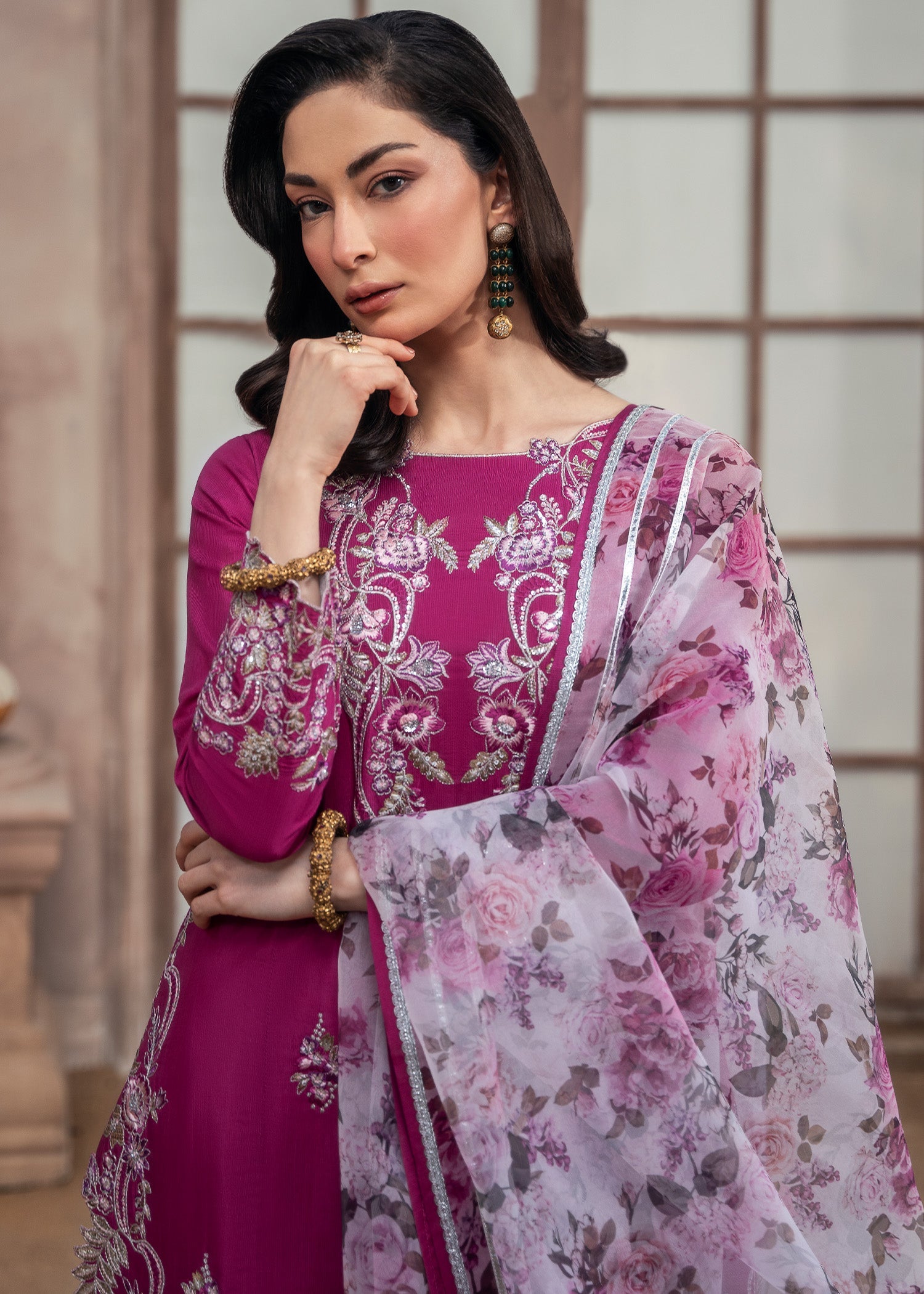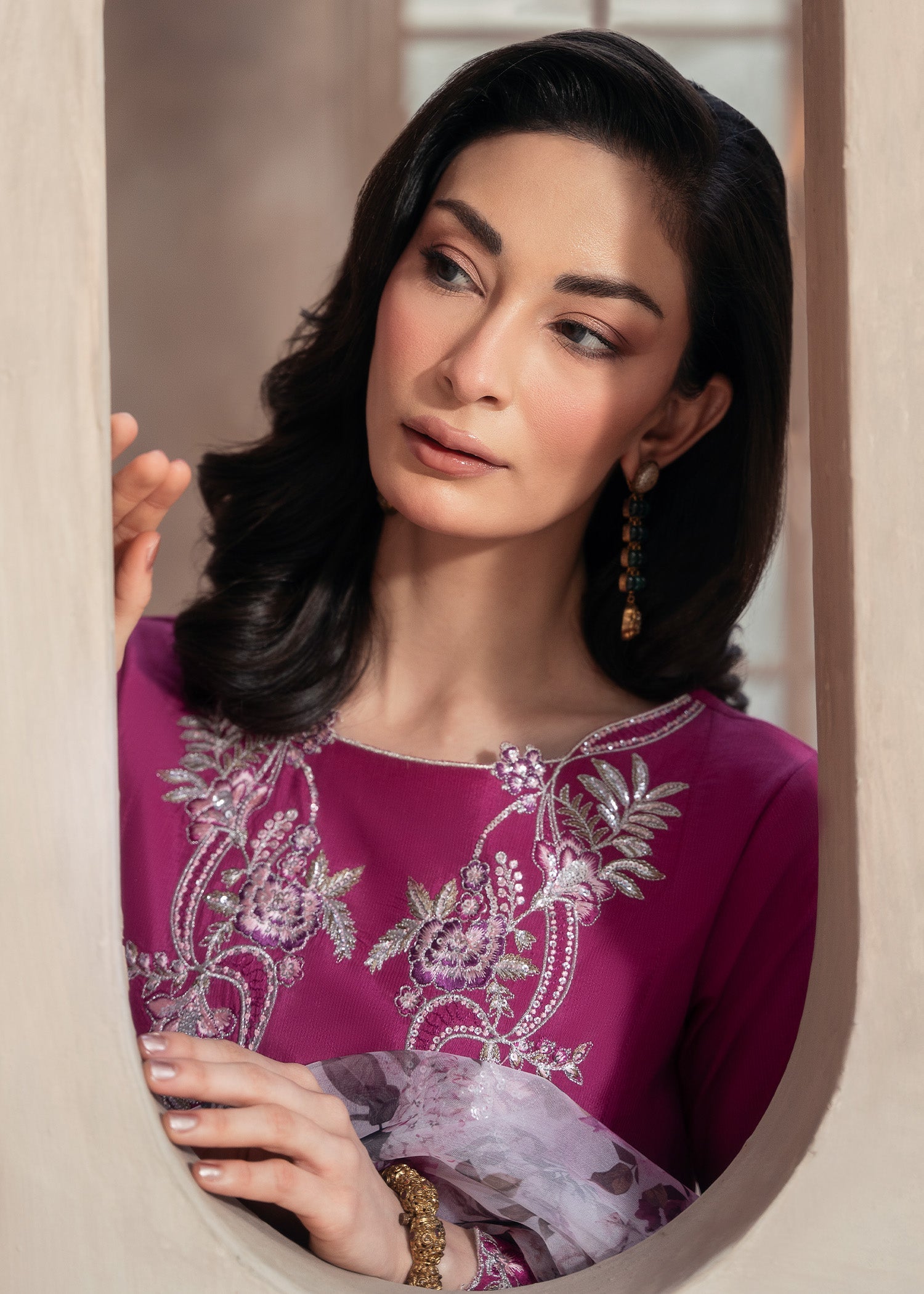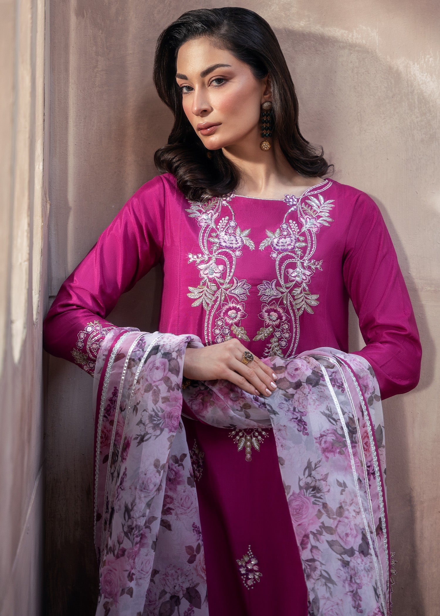 Festive celebrations, party wear, and special occasions where vibrant magenta elegance meets embroidered sophistication.