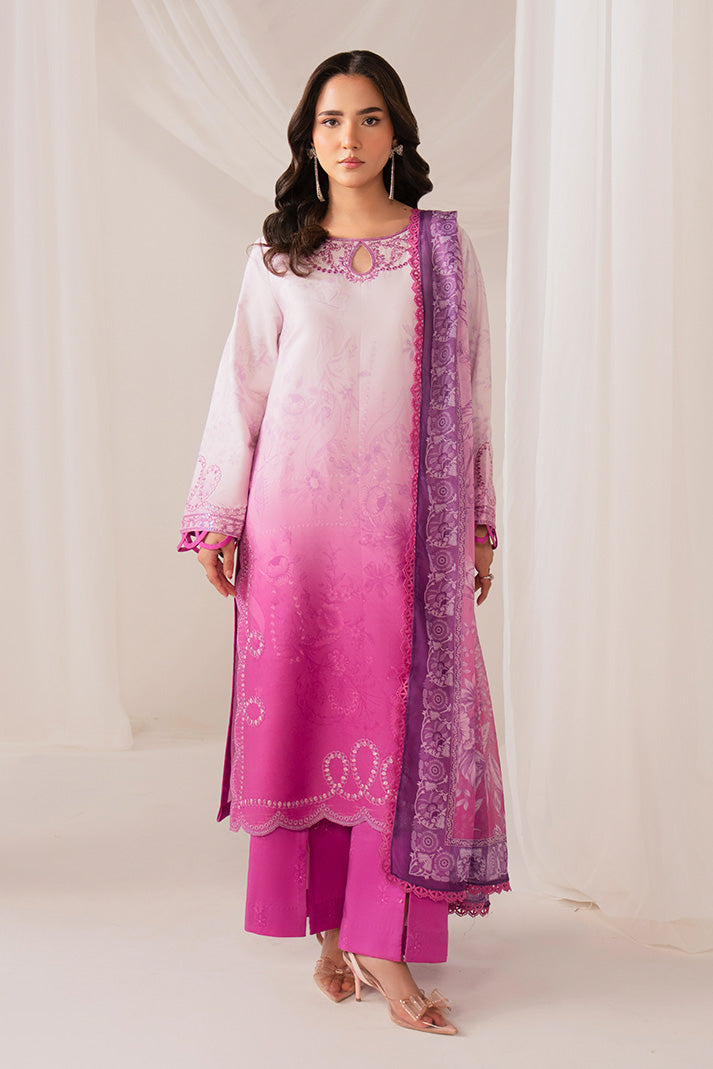 Draped in luxurious fabric, MIRELLE is where graceful sophistication meets contemporary charm — featuring beautifully tailored shirt with embroidered dupatta and matching trousers for elegant formal sophistication.