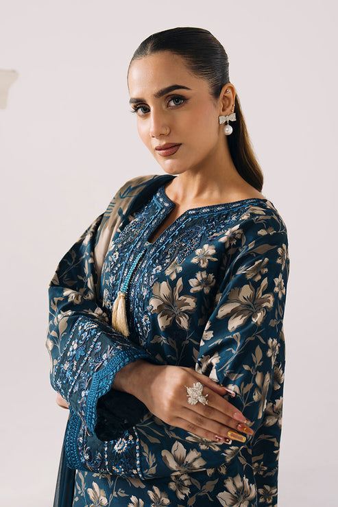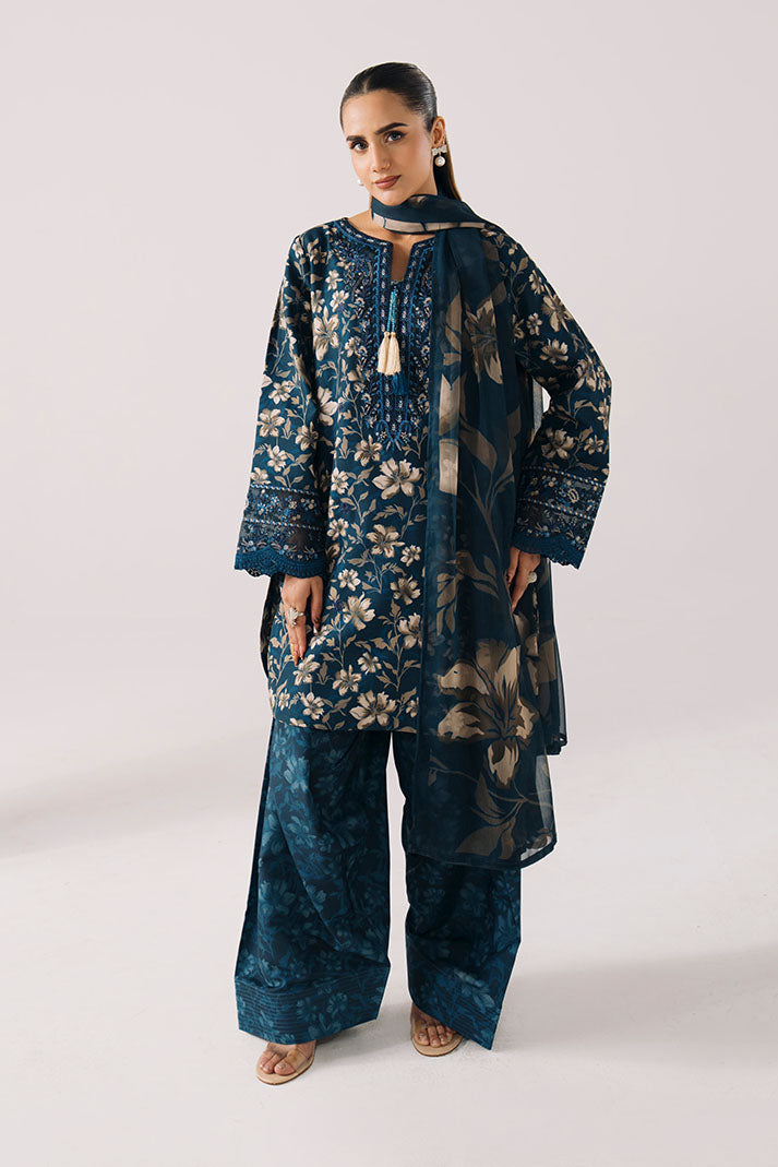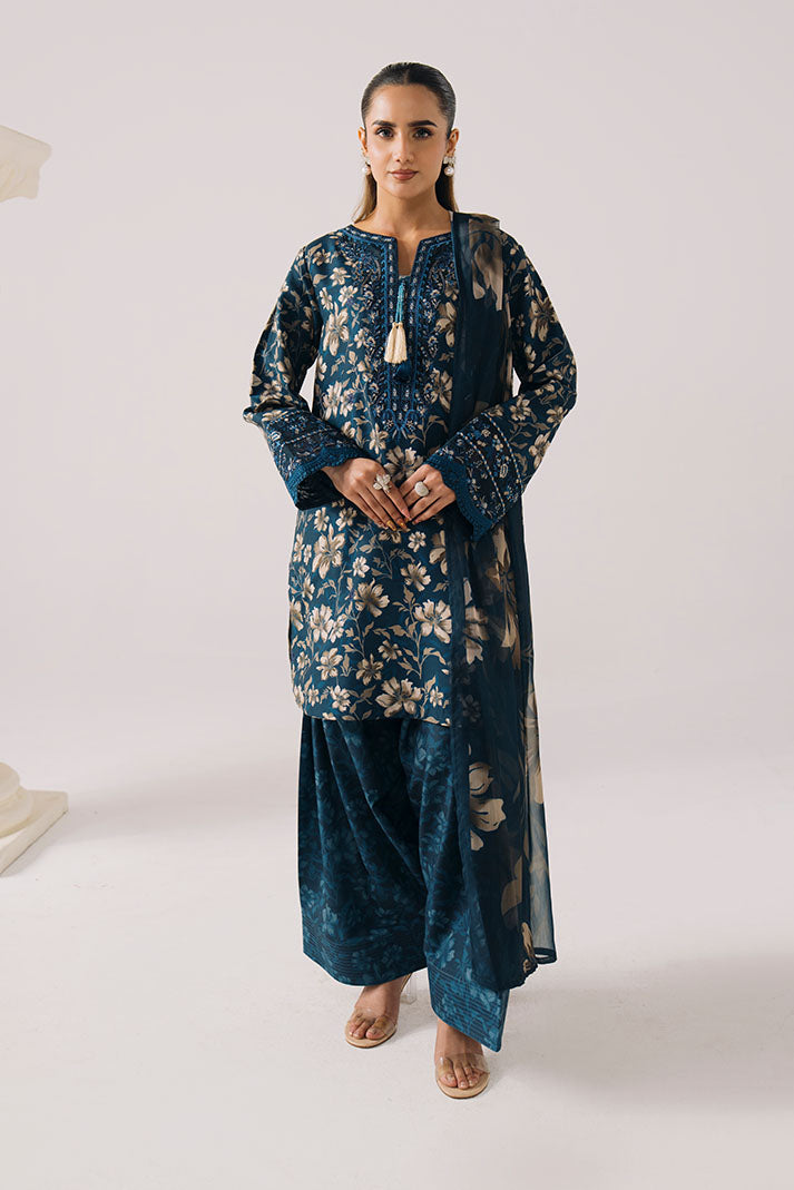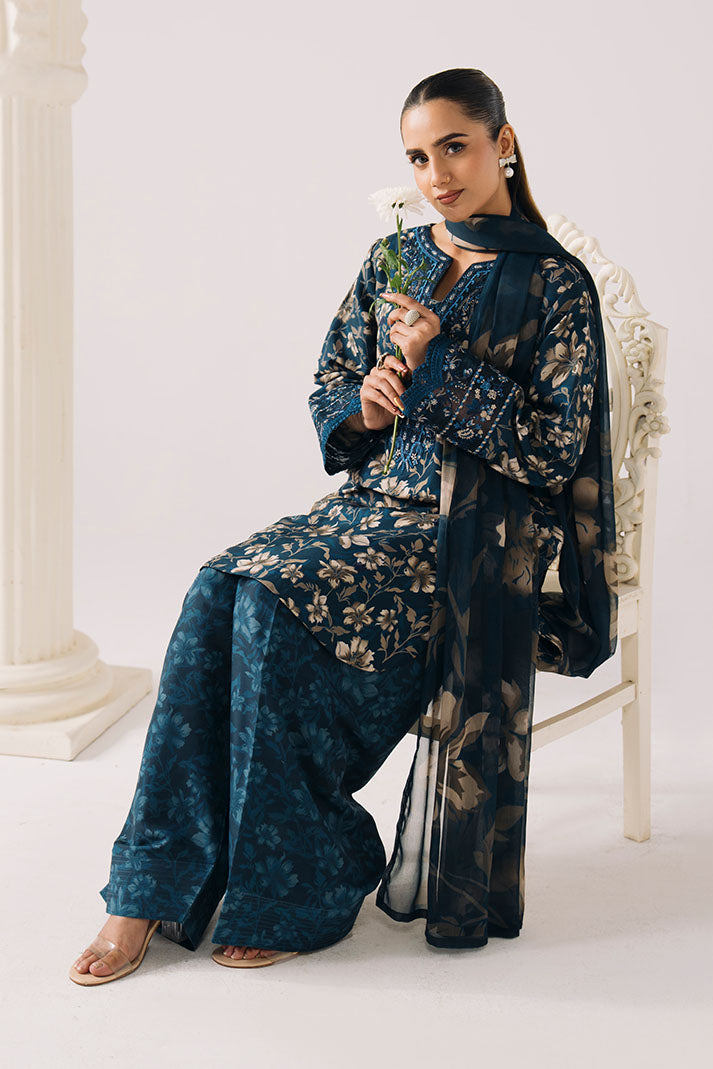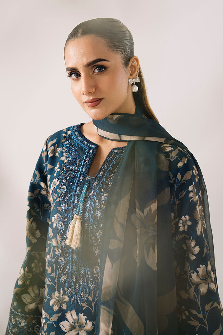 Draped in luxurious floral lawn, PETAL HAZE is where blue florals meet refined summer sophistication — featuring beautifully embroidered shirt with chiffon dupatta and matching trousers for delicate summer charm.