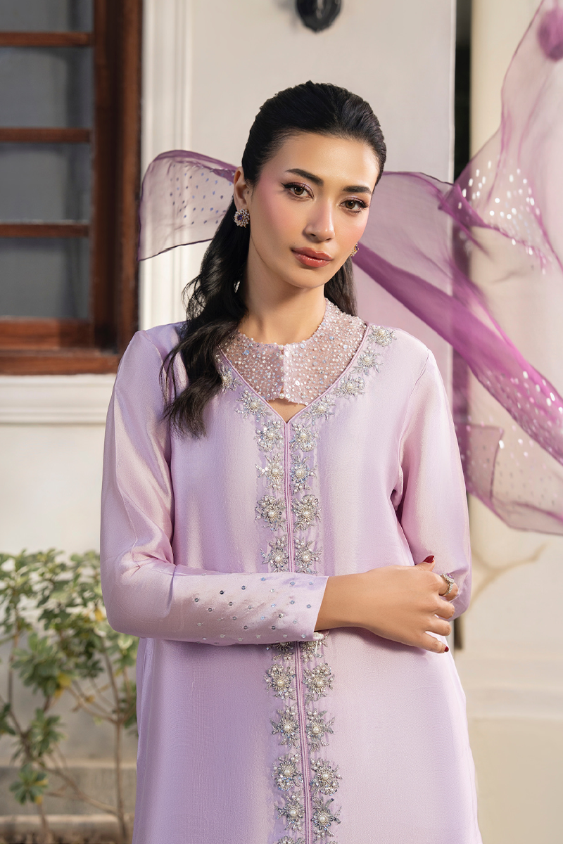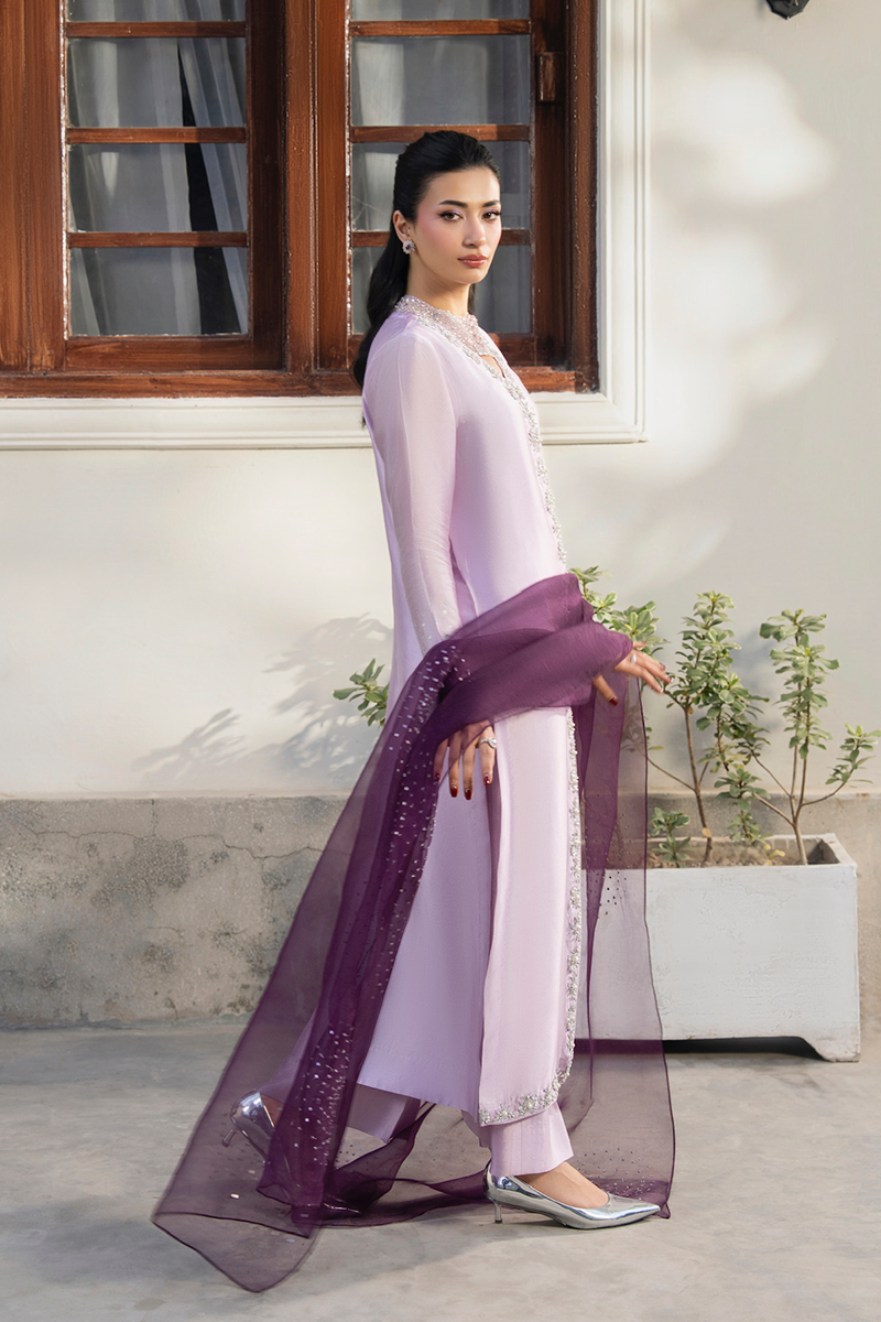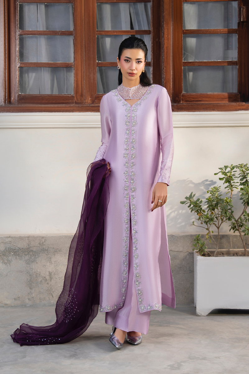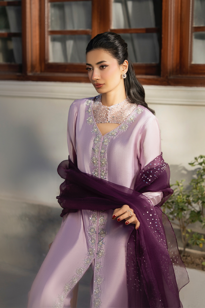 Weddings, formal events, and festive celebrations where pure sheesha silk drama paired with an airy organza dupatta creates a look of serene, effortless grandeur.